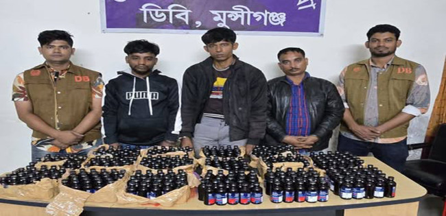 মুন্সীগঞ্জের লৌহজংয়ে ৪০০ বোতল ফেনসিডিল সহ তিনজন গ্রেপ্তার