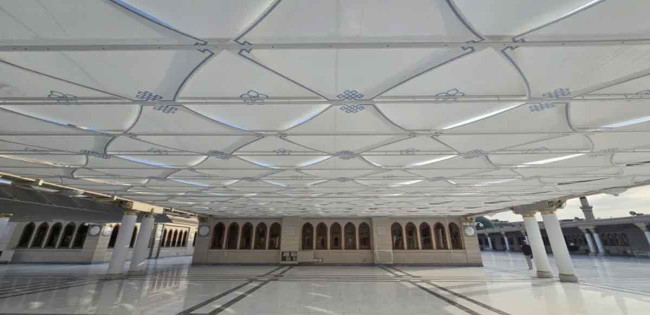 মসজিদে নববীর ছাদের নামাজের স্থানে নতুন ছাউনি স্থাপন