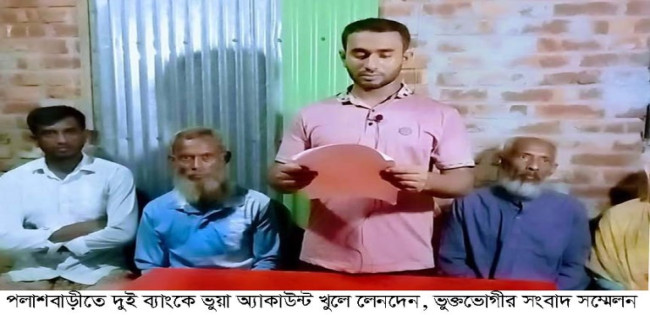 পলাশবাড়ীতে দুই ব্যাংকে ভুয়া অ্যাকাউন্ট খুলে লেনদেন,ভুক্তভোগীর সংবাদ সম্মেলন