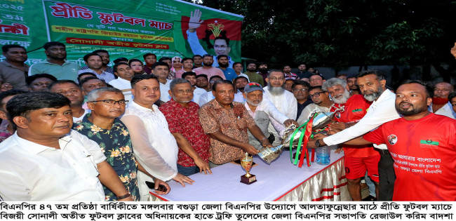 বিএনপির প্রতিষ্ঠা বার্ষিকীতে বগুড়ায় প্রীতি ফুটবল ম্যাচে বিজয়ী সোনালী অতীত ফুটবল ক্লাব