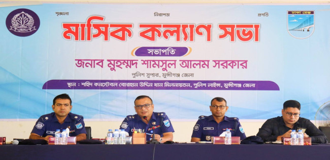 মুন্সীগঞ্জ জেলা পুলিশের মাসিক কল্যাণ সভা এবং অপরাধ সভা ও ইন্টেলিজেন্সি সভা অনুষ্ঠিত