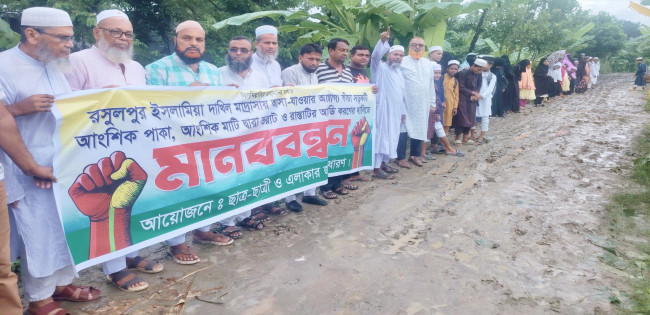 সিরাজদিখানে কাঁচা রাস্তা পাকা করার দাবিতে মানববন্ধন