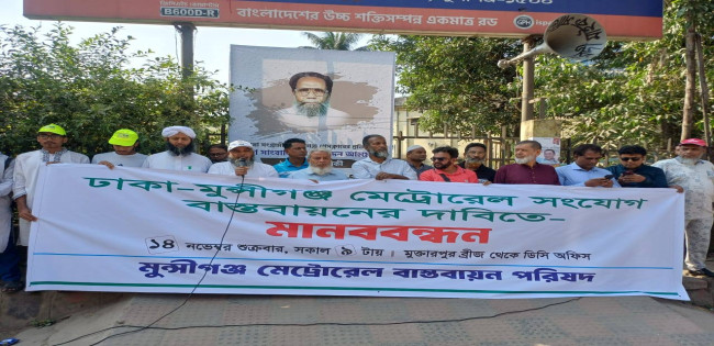 মুন্সীগঞ্জের মুক্তারপুর পর্যন্ত মেট্রোরেল সম্প্রসারণের দাবিতে মানববন্ধন ও সমাবেশ অনুষ্ঠিত