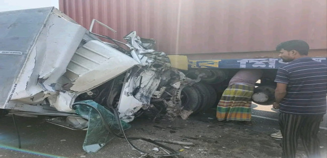 ঢাকা -চট্টগ্রাম মহাসড়কে লড়ির ধাক্কায় কাভার্ড ভ্যান উল্টে দু'জন আহত