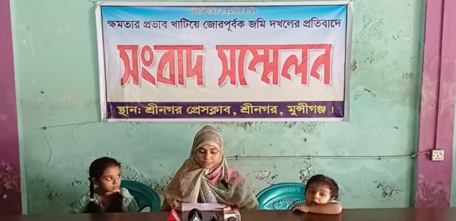মুন্সীগঞ্জ জোর করে জমি দখলের প্রতিবাদে প্রবাসীর স্ত্রীর সংবাদ সম্মেলন