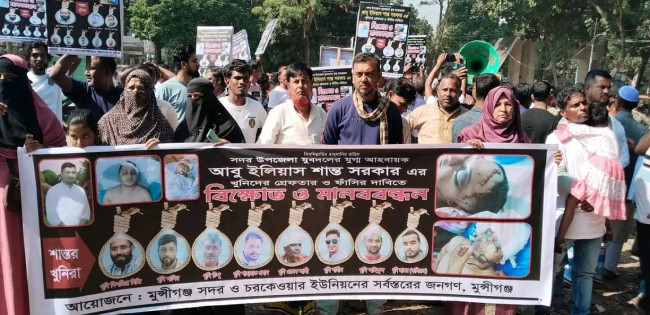 মুন্সীগঞ্জে যুবদল নেতা হত্যার আসামীদের গ্রেপ্তার দাবিতে মানববন্ধন ও বিক্ষোভ