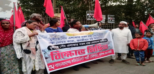 মুন্সীগঞ্জে সড়ক মেরামতের দাবিতে বিক্ষোভ