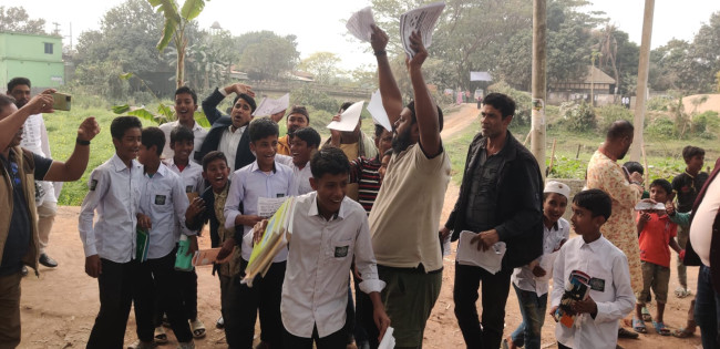 মুন্সিগঞ্জে কাস্তে মার্কার প্রার্থীর ভোট প্রচার ও লিফলেট বিতরণ