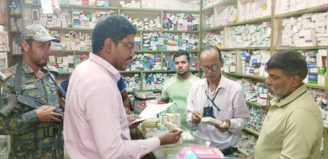 সুপার মার্কেট এলাকায় ভোক্তা অধিকারের অভিযান: মেয়াদোত্তীর্ণ ওষুধ রাখায় মুন্নী ফার্মেসিকে জরিমানা