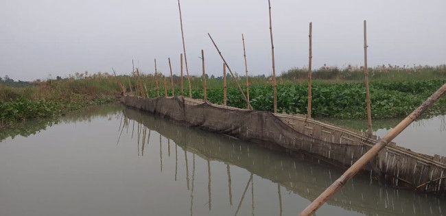 মুন্সীগঞ্জে পদ্মার শাখা খালে বাঁধ দিয়ে নৌযান চলাচলে বাধা