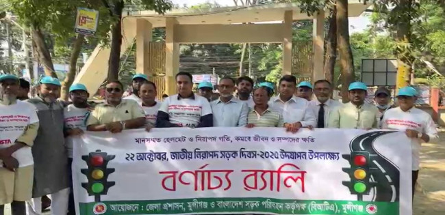 মুন্সীগঞ্জ জেলার জাতীয় নিরাপদ সড়ক দিবস উপলক্ষে র্যালী ও আলোচনা সভা অনুষ্ঠিত