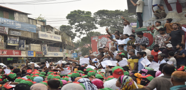 তারেক রহমানের ৩১ দফা বাস্তবায়নে টঙ্গিবাড়ীর আব্দুল্লাহপুরে বিএনপির লিফলেট বিতরণ