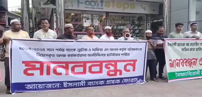 শ্রীনগরে চার দফা ইসলামী ব্যাংক গ্রাহকদের মানববন্ধন